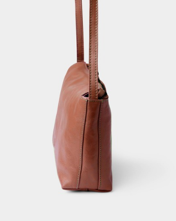 Bolso bandolera de piel de bufalo. Formato rectangular. Bandolera regulable. Cierre con cremallera. Bolsillo interno. Forro de algodón. Medidas: 18 x 24 x 8 cm (Alto x Ancho x Fondo)
