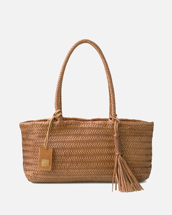 Baguette de piel vacuna trenzada. Cierre con cremallera. Bolsillos internos. Forro de algodón. Medidas: 47 x 21 x 10 cm (Alto x Ancho x Fondo)