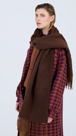 Bufanda de doble faz tacto suave acabada en flecos. Medidas 180 cm de largo x 65 cm de ancho.