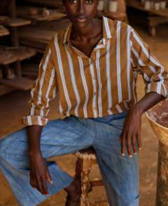 Camisa en tejido de cuadros vichy blanco y negro con apliques de encaje beige en forma de flores cerca del bajo que contrastan con el estampado geométrico. Corte amplio, con manga corta y botones delanteros en negro.
