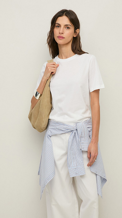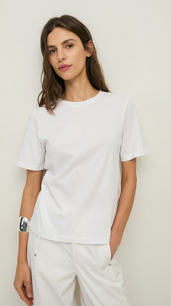 Camiseta blanca de algodón orgánico. Regular fit. Cuello redondo. Manga corta. Tintura OEKO-TEX. Detalle logo bordado. Longitud desde el hombro: 60 cm (talla S). Made in Portugal.