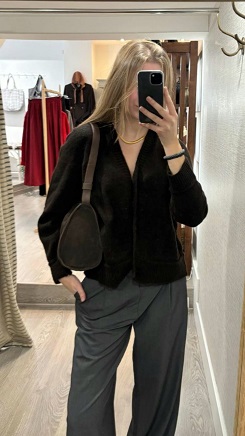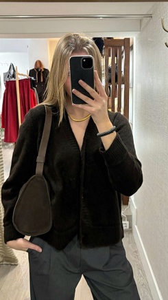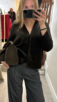 Cárdigan de punto holgado con hombros caídos. Cierre de botones en la parte delantera. Puños y bajo de punto acanalado. Cuello en V.