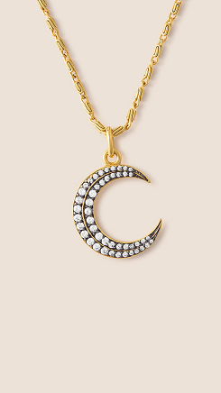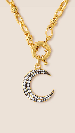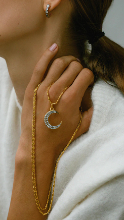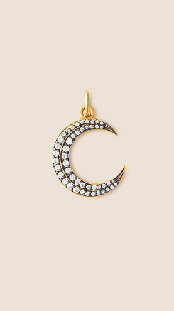 Charm en forma de luna creciente bañado en oro de 24k y realzado con circonitas sobre una base de rodio negro blackish.