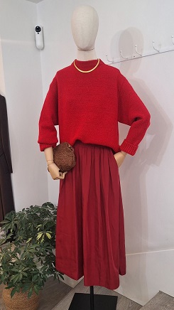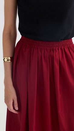 Falda midi confeccionada en tejido con efecto satinado. Diseño fluido. Cinturilla elástica. Dos bolsillos laterales.