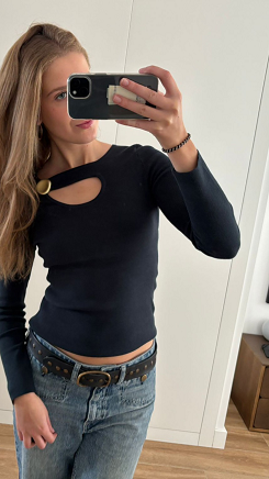 Jersey de punto lleno con hilo mezcla de viscosa. Detalle de escote asimétrico con botón XL.Fitting ligeramente ajustado.