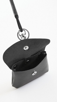 Mini monedero. Cierre con botón a presión. Cinta con mosquetón extraíble. Medidas: 10 x 9 cm