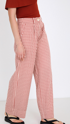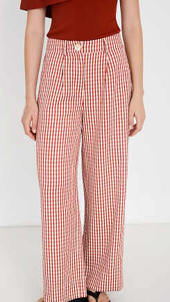Pantalón en tejido con estampado de cuadro vichy. Tiro medio y detalle de pinzas en el delantero. Cierre frontal con cremallera y botón. Fitting recto.