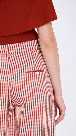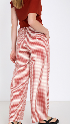 Pantalón en tejido con estampado de cuadro vichy. Tiro medio y detalle de pinzas en el delantero. Cierre frontal con cremallera y botón. Fitting recto. Dispone de blazer a conjunto.